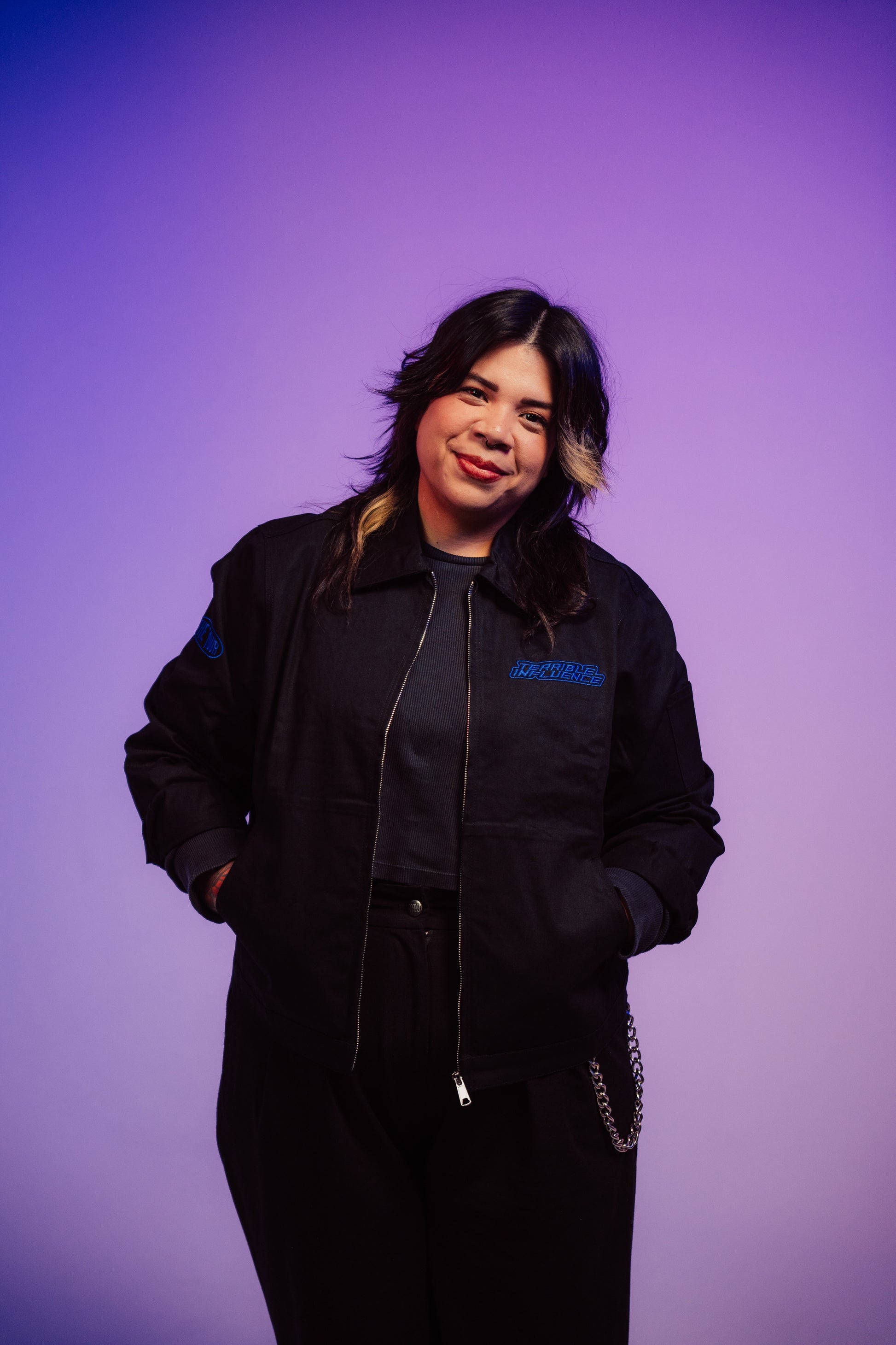 A work jacket with embroidered 'Sorry For Everything' on the back.
